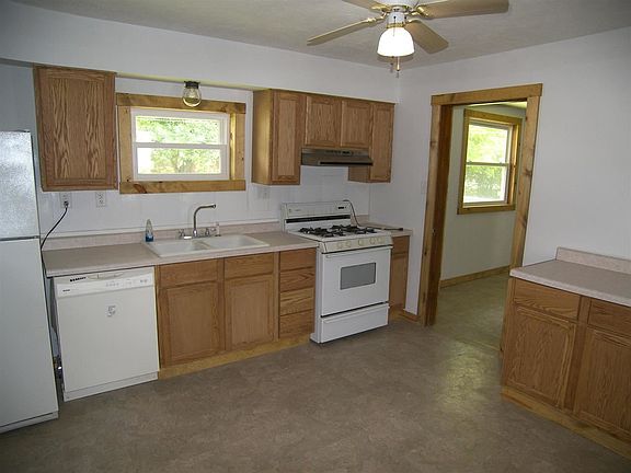 Totally remodeled 4 bedroom 2 bath home with big 2 car garage. New furnace, air, carpet vinyl siding and paint. New oak kitchen cabinets, countertops and vinyl flooring. Covered porch and nice fenced yard.