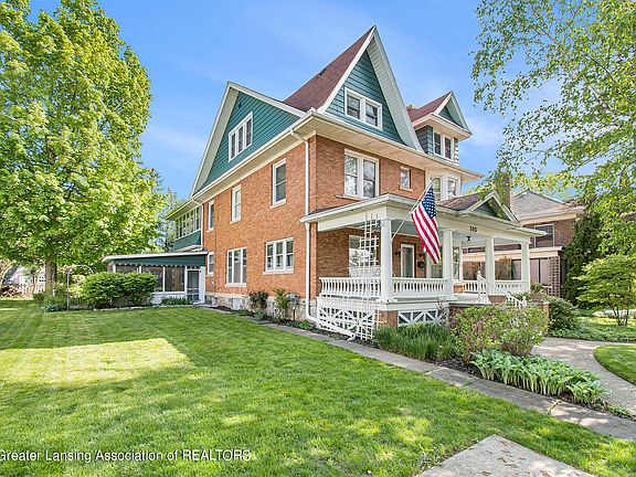 Amazing three story historical home. All brick one of a kind with custom kitchen, granite countertops. This home has had many uses over the years, formerly a Bed and Breakfast, also used for an adult foster care but for the last 24 years the current family was lucky enough to enjoy this beautiful home. The large parlor features the original art nouveau lighting fixtures and original gas fireplace with beautiful oak mantel and hardwood floors. The huge open staircase is gorgeous. The formal dining room with beautiful sliding beveled glass doors will certainly impress friends and family when entertaining. Original woodwork throughout the home with cove and baseboard moldings. The magnificent grand ballroom on the 3rd floor features a full bath and 3 alcoves. Just imagine the time of yesteryear when families would entertain in this spectacular ballroom. Enjoy your large front porch or screened in patio that overlooks the landscaped yard. The ultimate garage features a 2nd floor storage with full walk-up stairway, 220 electrical service, heat, workbenches, car engine support I-beam and door opener. A high degree of pride of ownership is apparent in this home. This historic home was featured in the September 2006 Sesquicentennial celebration. Wait until you see the beautiful old English style pub as a bonus to this home.