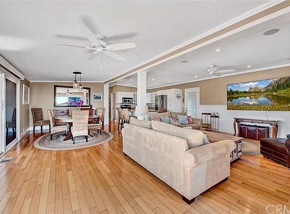 Spectacular double wide remodeled panoramic ocean view home located in the 55+ community of Capo Beach Cottages! Step into this comfortable home with oak floors and an abundance of natural light, smell the ocean breeze and hear the crashing of the waves! Open floorpan with walls of glass to take in the sit down views! Living room with wainscot, crown molding, tall baseboards, ceiling fan and encased windows. Remote control operate shades for privacy and bi-fold doors open from wall to wall to allow indoor/outdoor living space! Imagine making meals in your kitchen while gazing at the views! Kitchen has granite counters, beautiful cabinetry some with glass to show of your glassware/dishes, stainless steel fridge double sink, dishwasher and range with oven and microwave. Beautiful breakfast bar has wainscot and is open to the living space. There is also a dining area for intimate dinners and sit down views! Master suite is sumptuous with attached bath. Master bath has dual sinks, and large walk-in shower as well as a walk-in closet. 2nd bedroom has a convenient Murphy bed and could be used as an office. Bathroom 2 is well located for guests and has a jetted soaking tub. Features include: dual pane windows, recessed lights, ceiling fans in all rooms, newer roof, tankless water heater, new bi-fold doors, newer paint, tinted windows, new awning over driveway, newer appliances except for microwave and washer/dryer. Come live the beach life that cannot be missed! Development amenities include: heated salt water pool, your very own private beach with fire pit, private clubhouse, sitting area, BBQ, outdoor shower and pickle ball court. There is a also a bike/walking trail that runs along the coast and is easily accessible.