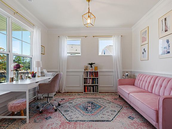 Stunning FIVE BEDROOM like-new home located in sought after Broadwell Trace. *Explore our virtual tour for a closer look.* A charming double front porch welcomes you into the home, setting the tone for what's to come. The gourmet kitchen includes quartz countertops, tile backsplash, stainless steel appliances, and an expansive island. Cozy up in the living room with your gas fireplace. There is one bedroom on the main level with a FULL bath. The main level also includes an office with French doors and a peaceful sunroom. Upstairs, the relaxing primary suite features a large walk in closet and a gorgeous bathroom complete with separate DUAL vanities and a large tile shower. Two more bedrooms, another full bathroom and a loft area round out the second level. Off of the loft is a charming second level porch perfect for a morning coffee or to cozy up with a good book. The third floor features another bedroom and full bath. Step onto the back patio to enjoy the expansive fenced in yard. Conveniently located near restaurants, shopping, downtown Fuquay, Varina and Holly Springs. Move in and enjoy!