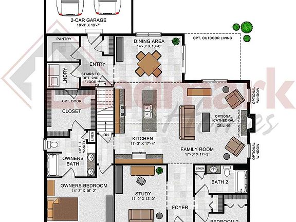 Ideal first-floor living with private owner's suite tucked away in its own corner of the home.. With over 1,800 square feet, 2 bedrooms, and 2 full baths, plus open living areas, this is a perfect home for entertaining guests. The kitchen is open to a spacious family room and the sunny dining area. Off of the 2-car, alley load garage is a convenient mudroom entry. (See Community Sales Manager for details.)