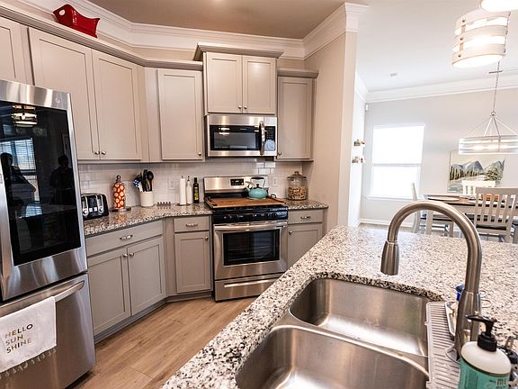 Experience the versatility of single-level living, featuring a bright dining area seamlessly connected to a sun-filled sunroom with backyard views and access to a covered patio. The adjacent open kitchen includes an eating bar and overlooks a spacious family room, creating an expansive and inviting living space. Retreat to the owner's suite at the rear of the home, offering a private sanctuary with a luxurious spa-like bathroom and a sizable walk-in closet. A conveniently placed large laundry room enhances everyday convenience. Upgraded features include stunning granite countertops and low-maintenance vinyl plank flooring in the kitchen, complemented by charming tray ceilings in the master suite, and more.