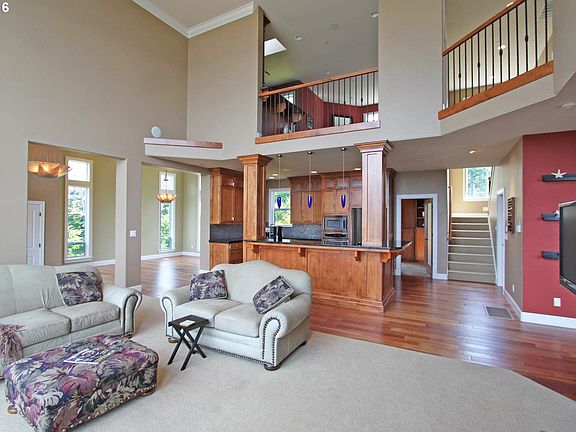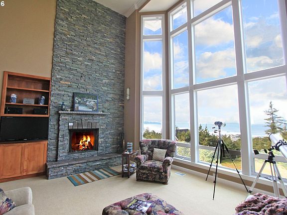 SPECTACULAR OCEANVIEW FROM A SPECTACULAR home. Sumptuous interiors incl lavish cherry woodwork, floor-to-ceiling masonry frplc, delightfully fun wetbar & party area with frplc, media room with built-in sound, romantic master ste with deck, luxury bath & intimate frplc, heated flooring on main, coffered ceiling. Dream kitchen: high end appliances, slab granite, cobalt blue pendants. Apx65mi West of Portland in an upscale gated community.