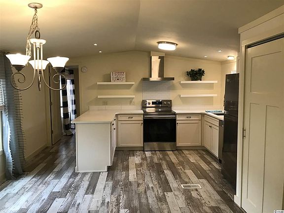 Only 4 miles from Market Common and another mile to the beach, this home is tastefully furnished and stunningly updated. If you are looking for a full time or vacation home in Myrtle Beach under 80,000 you need to look at this property. With updates galore, be sure to check out the deep soaking tub, new kitchen cabinets, stainless steel appliances, and quartz counter tops. Sold turn key furnished, this home is ready to move into. This is a tree shaded lot with a large front deck, perfect for entertaining. There is an 8 x 10 Shed to hold all your beach needs. Owner is a licensed South Carolina Realtor. Buyer is responsible for verifying square footage.