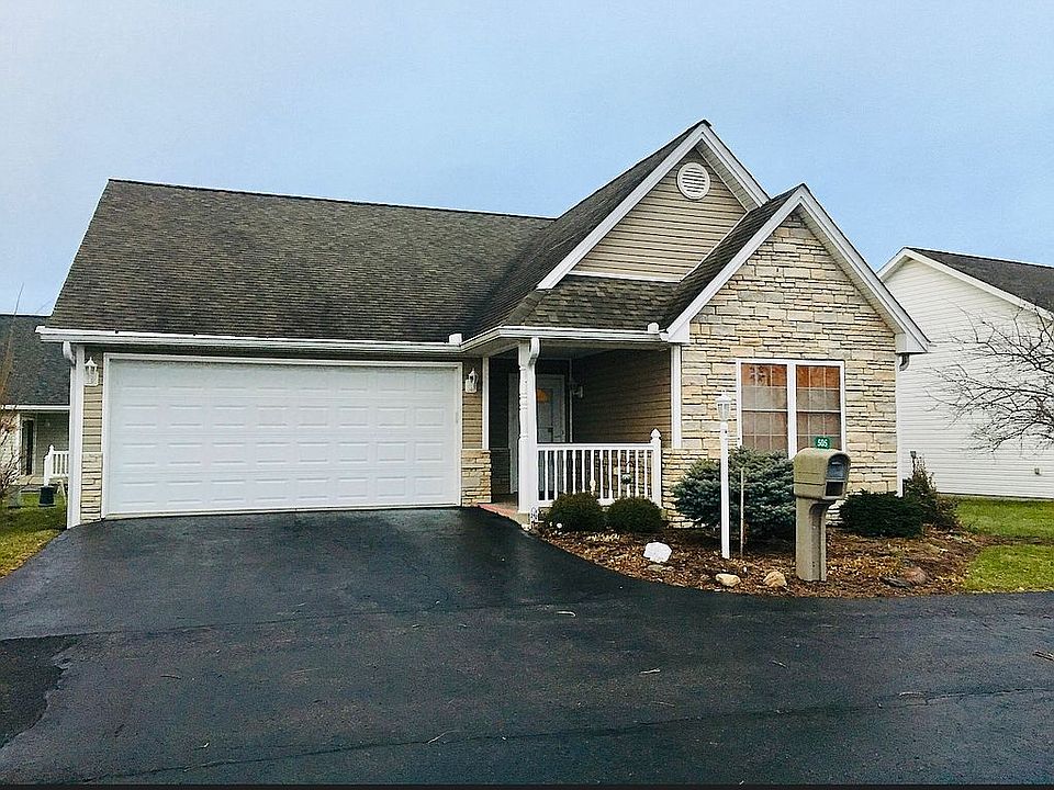 Gorgeous single family condo in Pheasant Run! Welcoming porch and stone front with attached 2 car garage. One floor, all accessible with an open floorpan and separate laundry room. Beautiful kitchen with pantry and crown moulding. Large living room with vaulted ceiling and adjacent den. Ready and waiting for you, welcome home!