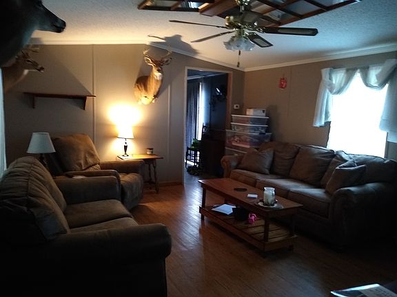 WELL MAINTAINED HOME. In the past 5 yrs it has had a new metal roof put on. All new house windows that open and flip to clean. New counter tops in Kitchen. New high rise commodes in each bathroom. This home is OSB wrapped. Well insulated. Comes with stove and dishwasher. Both work. Also has drip pan under water heater. All water pipes under home are well insulated. Being SOLD AS IS. It is on a good size rented lot. Owner says can stay on lot. Has Central air with floor furnace. Had new furnace motor with cage put in 2017. Full dry wall through out. Cathedral ceiling thru out. This home has never leaked. Great solid floors. Has town water. Shares septic with neighbor. Septic was pumped in 2018. This home has been here since 1999. Storage bldg does not convey. Has a Coleman 16' round pool-4' deep, willing to leave if wanted.