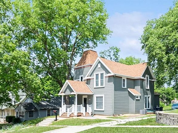 Take a turn back in time to this turn of the Century Charmer! A brick road will lead you home! Ceilings, wide wood work, detailed ginger bread trim, ornate stair case, oak floors, picket door and more. Formal living room, dining room, eat in kitchen, quartz counter tops, new cupboards, and all stainless steel appliances remain with sale. Main floor bedroom and bathroom. Up the beautiful stairs you will find 2 more bedrooms, a bath with claw footed tub, chandilier lighting. The exterior is gray steel siding, replacement windows, new mechanicals and roof. Cute covered portch will greet you. Antiques will show well here. Lets not forget cute mudroom and laundry at back of home, counter and cupboards for all your needs. Just say home!