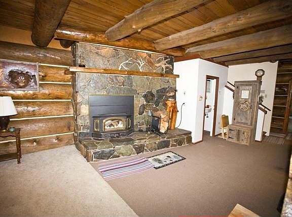 Private 4 bedroom, 2.5 bath, 2804 Sq. ft finished 4956 sq ft total. Bavarian Style log home on 22.35 acres. Custom woodwork, Country Kitchen with island, dining room, custom stone fireplace with raised hearth and mantel, and large living room. One wing can be a multi room entertainment area or a master suite, office and den with large covered decks and 2nd fireplace. There is a large shop/ woodworking/ hobby room and laundry off 2 car attached garage, extra storage/work room and barrel stove in basement. Fenced garden area, barn/storage, forced air gas heat, balcony off master bdrm. Home overlooks private meadow and mountains with no ccrs. Landscaped grounds this home is a must see!!
