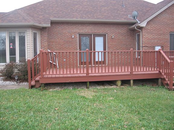 A very nice one owner brick ranch with lots of hardwood floors, granite countertops, LG stainless steel appliances, nat gas heat, gas fireplace, 3 car garage with large paved driveway, large deck, full basement with outside entrance, basement partially finished, lots of walkin closets, trey ceilings, and bay areas in Kitchen and one bedroom, his and her vanities in MBath