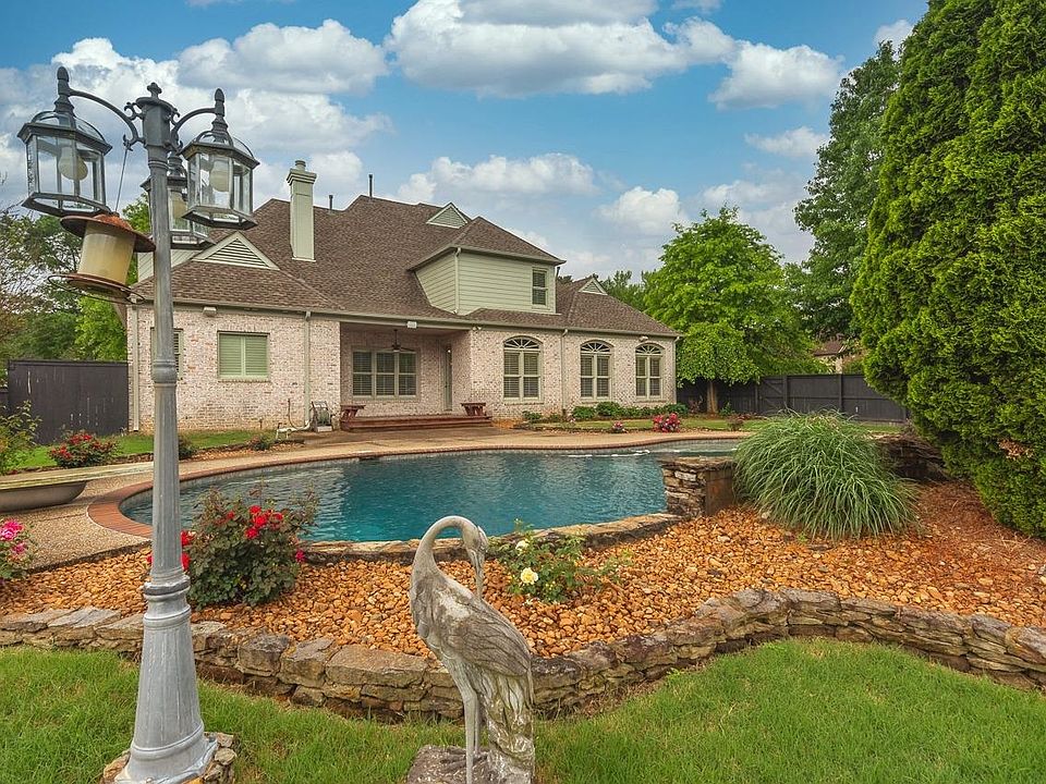 Beautiful gated home in Greystone Subdivision! Awesome location--unincorporated Cordova (County taxes only)! Lovely corner lot w/5bdr (2 down)/4 full baths, 3 car garage, hardwood floors downstairs, bamboo flooring up, plantation shutters throughout, 10ft ceilings down & 9ft up, 2 fireplaces, office, bonus/gameroom, & sitting area upstairs. The backyard is stunning with a gunite pool, waterfall, half-basketball court, covered & uncovered patio areas for entertaining, plus irrigation system.