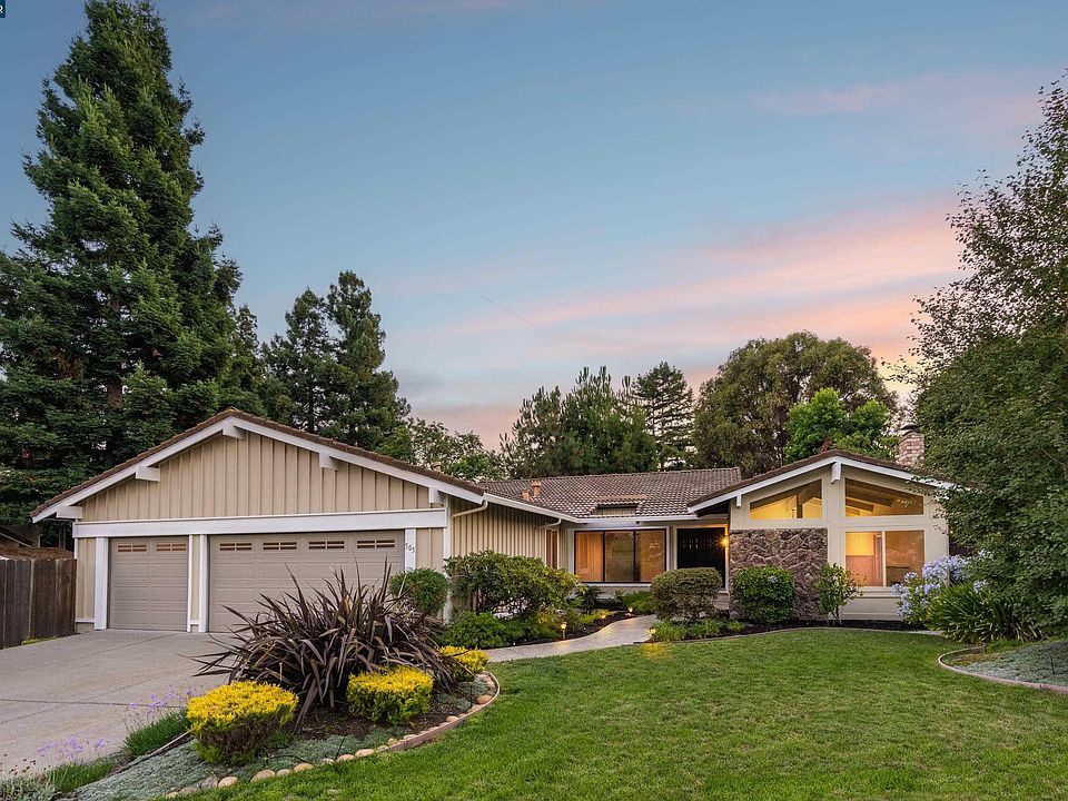 Located on a quiet cul-de-sac in the desirable Country View neighborhood, this rarely available home highlights a newly painted interior/exterior, new flooring and custom light fixtures. This floor plan features a formal living and dining room with vaulted ceilings, sunny kitchen with breakfast nook and a spacious family room with wet bar. With multiple access points, step out to the backyard oasis and catch a glimpse of Mt Diablo from the deck. This flat lot offers a lush lawn for play, mature trees offering privacy, spacious patios, large side yard and a sparkling pool/spa. Make your way to the primary bedroom suite with backyard access and an ensuite bath boasting a walk-in closet and dual sinks. This home is complete with 3 additional secondary bedrooms and an upgraded hallway bath. This spectacular home is located within the award-winning San Ramon Valley school district and just a short drive to the freeway, Crow Canyon Country Club golf course, the Canyon Lakes golf course, and shopping/dining at City Center and downtown Danville.
