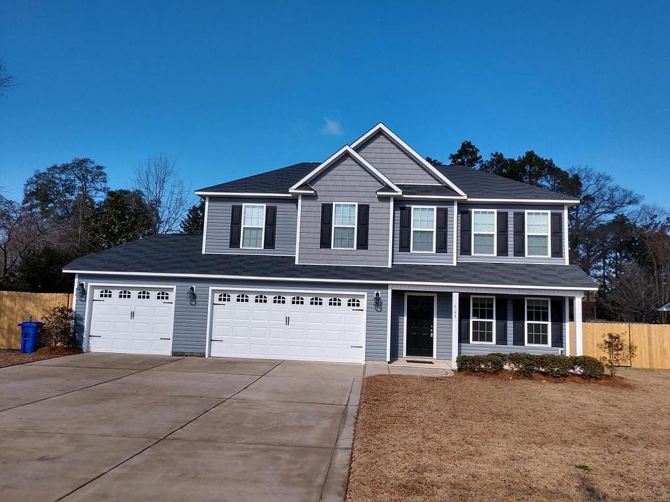 Cottonade-Stone and Vinyl 2 Story with 4 bedrooms, 2.5 bath, great room with fireplace, study, kitchen with bar seating, pantry, island and dining area, foyer, rear covered porch, large family room area upstairs, master suite with walk in closet, dual vanity, garden tub and separate shower.