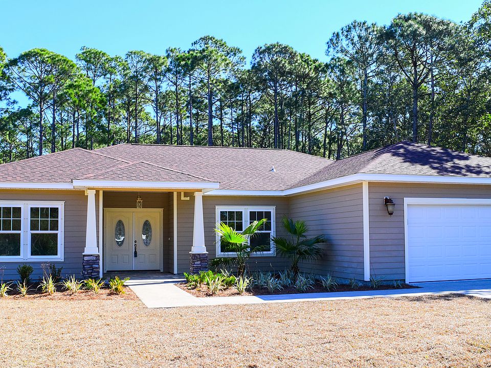 This is a craftsman style 3 bedroom 2 bath home with a separate office in Hidden Pines Subdivision offered by Armeni, llc in conjunction with Alpha First Construction Inc, is very conveniently located to Navy Base, Schools, and Shopping. With over 2100 square feet this home features split bedroom plan, 9ft Ceilings with Trey Ceiling in Great Room and Master Bedroom, fabulous open kitchen with stainless steel appliances, custom cabinetry, granite countertops and an island at the center - great for entertainment. Off main hallway located office that can easily be converted into fourth bedroom. Two additional bedrooms share a bright and spacious bathroom with double sinks. Master bedroom is tucked away for privacy and features Trey ceiling, plush carpet, the size of this room will fit a King sized bed and a huge walk-in closet is built for a Queen! Master Bathroom has a tub and a separate shower, double vanity and is filled with natural light. Outside you will see an oversized covered back patio, nice large back yard and all this topped off with a custom landscape plan!