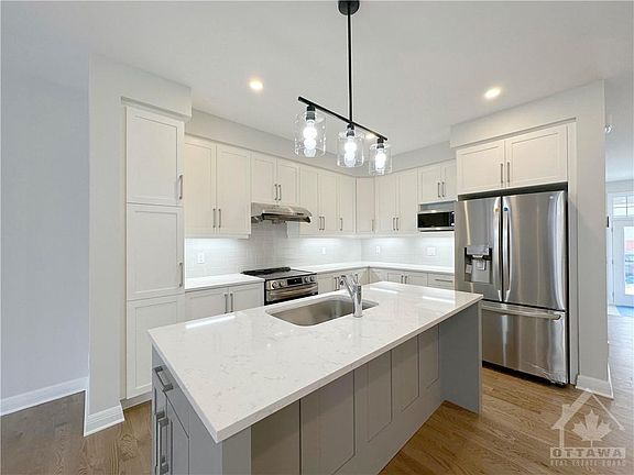 Lovely brand New Uniform move-in ready townhouse in Richardson Ridge Kanata lakes. You will be impressed by the hardwood throughout the first and second floor. The open concept dining room and brand New kitchen with stainless steel appliances when you enter the door. The main floor also offered an exceptional living room with a cozy gas fireplace. Beautiful hardwood staircase leads to the second level complete with a huge primary bedroom and WIC and 4pcs ensuite bathroom, 2 spacious bedrooms\a full bath and convenient laundry as well. Fully finished lower level with a generous sized Rec room and extra size window. Minutes to Kanata high-tech and the 417. Measurements per builder's plan, 2136 sqft. (Landscaping will be finished by Builder in 2023) . Close to everything and top school boundaries. Do not miss out on this great property and call for your private viewing today! 24 hours irrevocable on the offers. Copyright Ottawa Real Estate Board (OREB). All rights reserved. Information is deemed reliable but not guaranteed.