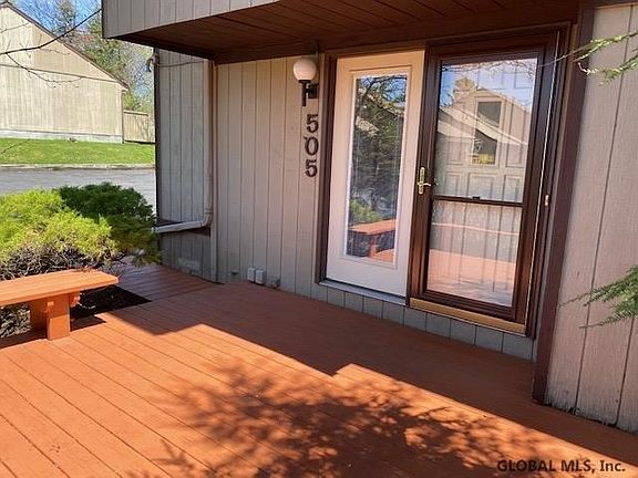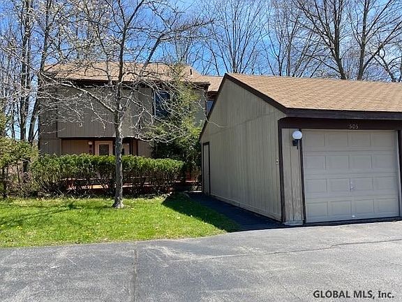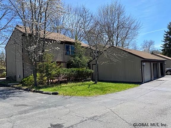 Awesome hard-to-find private end unit! Conveniently located...minutes from I90/Regeron/shopping/YMCA and more!! Gas fireplace, built-ins, new replacement door, windows and slider. Fabulous 3 season room leads to private back deck, garden, terrace and wooded area. Lovely front deck with attached bench seating. Finished basement for extra family room or maybe home schooling! Detached garage, extra parking. New roof 2018. Even a sauna to enjoy optimal health! Gorgeous inground pool and club house ($180 per year), available for events and parties and play area for kids. Enjoy maintenance free!