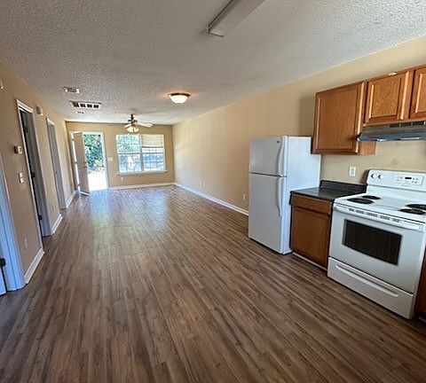 2 bedrooms 1 bathroom end unit featuring a living room/dining room combo, kitchen with refrigerator and stove/oven. Separate laundry room that leads to the back patio. Paved parking with walk-way. Non-smoking, 1 year lease, pets considered. NO SECTION 8