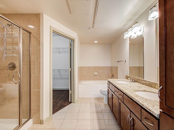 Welcome to 505 Jackson Hill! This unit offers comfort, style, and convenience all in one. Located in the heart of Houston, just minutes from Memorial Park, Buffalo Bayou, and all the dining, shopping, and entertainment Washington Avenue has to offer. Step inside to find an open-concept layout with soaring ceilings, hardwood floors, and an abundance of natural light. The gourmet kitchen features granite countertops, stainless steel appliances, and a large island perfect for cooking and entertaining. The spacious primary suite includes a walk-in closet and a private en-suite bathroom with double sinks, a soaking tub, and a separate shower. Whether you're working from home or exploring the city, this condo puts you in the center of it all. The primary bathroom has a separate shower and large soaking tub while the secondary bath has a special walk-in tub with a shower fixture. There is a wonderful pool area just steps from the unit on the same floor.