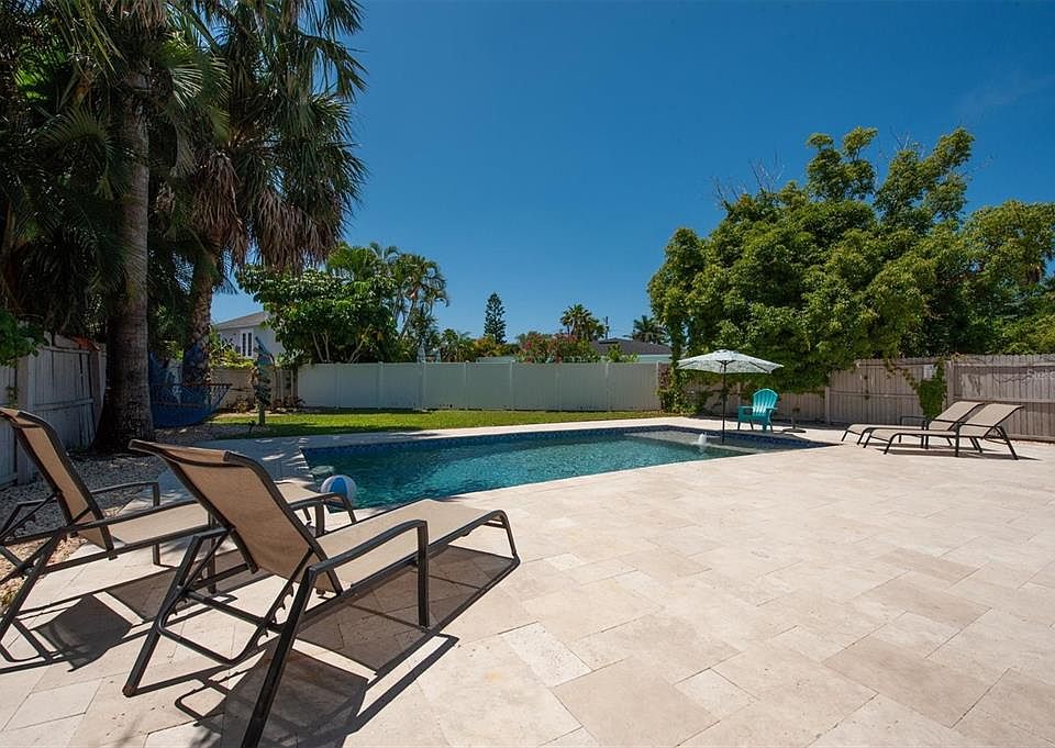 Great NEW Price!!!Come see this beautifully renovated pool home located on Indian Rocks Beach just a short distance away from the white sandy shores of The Gulf of Mexico. This home is in a fantastic location in a golf cart community near public transportation, shops, entertainment and some of the most popular bars and restaurants on Indian Rocks Beach. This lovely property has a wonderful floor plan with an office/den area that could easily be converted into a third bedroom. and was recently renovated to a high standard within the last 5-6 years with a new AC, roof, appliances, windows, plumbing lines, fixture and fittings. There is also a wonderful screened in porch patio that opens to an incredible grassy backyard oasis making it great for entertaining and get togethers featuring a large, heated pool installed in 2019 with 1,300 sqft of pool decking designed with travertine pavers. This home is currently being used as a vacation rental and is being sold turnkey with all of the furniture and furnishings and future bookings.