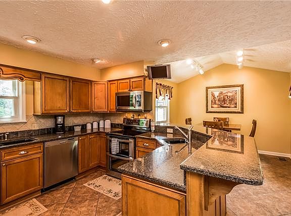 Click photo for link to many more pics and virtual tour of hm & shop/office area. Home has new kitchen, playhouse w/elec, tiki bar, pool bathrm, heated pool, pool table in bonus, ventless gas logs, triple pane windows, wash/dry remain, 2 ac units