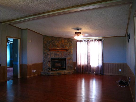 Gorgeous country setting overlooking a scenic ridge that will provide a majestic burst of fall colors. This one level home boasts an open floor plan highlighted with a stone fireplace and plenty of sunlight beaming natural light into each room. The oversized kitchen offers a breakfast area, plenty of counter space and cabinet storage, pantry, plus a desk/bar area too! The split bedroom floor plan gives privacy for guests and the owners suite. In addition, every bedroom has a walk-in closet. The master bedroom bathroom has a walk in shower, garden tub, custom shelf, and double sinks. Other features include a laundry room, storage shed, large yard, and a covered porch to relax your cares away! Call today for an appointment.