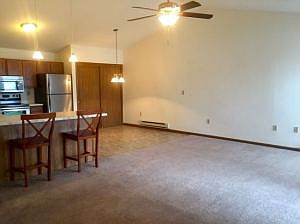 Why rent when you can impress yourfriends with this wonderful 2+ bedroom condo! Live carefree. No more shoveling snow or mowing the lawn. This home is in move-in condition. You will love the openness! Features include cathedral ceiling, oak cabinets, NEW carpet throughout, NEW stainless steel appl, New water heater & washer/dryer, updated bathroom and freshly painted. The bedrooms are larger with a den/office that could be used as a 3rd bedroom. BONUS! Association In-Ground Pool!