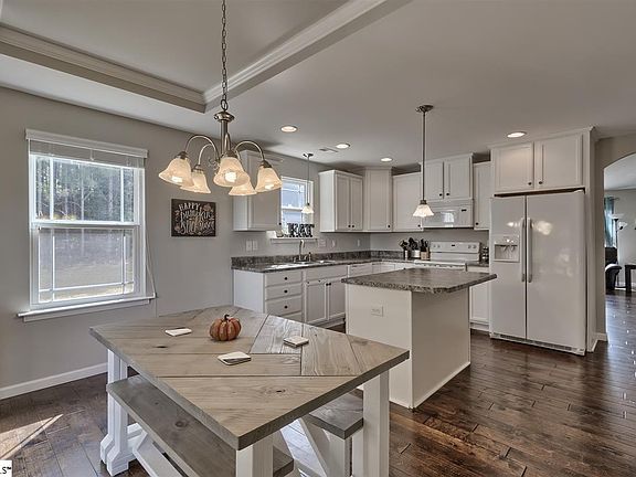 Convenient to Campus! The university is only a short drive from this almost-new 3-bedroom/2-bath ranch home close to Lake Keowee. This welcoming floor plan delivers: a striking great room with hardwood floors; master suite with walk-in closet to quickly find your clothes, dual sinks; traditional dining room; large laundry; cheerful kitchen with garbage disposal, dishwasher, work island for cleaning veggies, double sinks, microwave, electric range, breakfast bar for serving buffets; thermal glass windows; large covered patio; fenced back yard; a sprinkler system; heat pump; front porch; 2-car garage.
