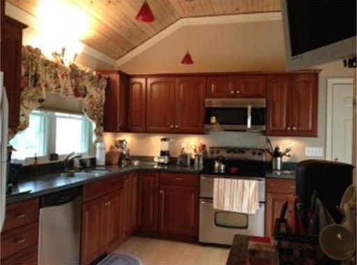 Cape with open floor plan features over 1700+ sq. feet of living area features a new kitchen with cathedral ceiling, s/s appliances & slider overlooking private yard, dining area open to living room with fireplace, 4 bedrooms, 3 season sunroom. Many recent improvements including new roof, heating system, hot water tank & freshly painted exterior. 3 yr. old septic. Call today! Larger than it looks!!