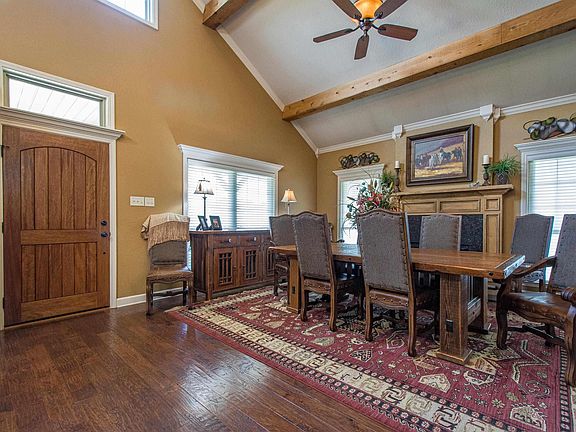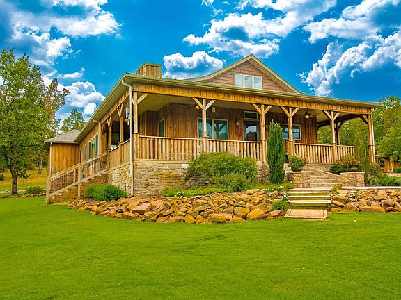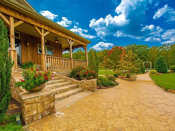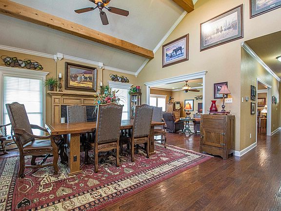 Luxurious Resort-Style Retreat - Stunning custom-built home combines meticulous attention to detail and energy efficiency. Nestled on 7 sprawling acres, the wrap around front porch features cypress wood and rock with a view of the beautifully manicured lawn, lush landscaping, and mature trees. Relax or entertain on the covered and uncovered patios featuring a gas fire pit and charming cook shack. You will have privacy and space for all your outdoor desires in a serene atmosphere. The geothermal unit, additional insulation, and enclosed crawl space ensure that this home is energy-efficient year-round, keeping you comfortable while reducing your environmental footprint. A gourmet kitchen with granite counter tops, and a spacious island featuring a custom cutting block, perfect for culinary enthusiasts. Open-concept living spaces with soaring ceilings, impeccable finishes, and abundant natural light. Enjoy the convenience of 2 primary bedrooms, each with its own ensuite bathroom and walk-in closet. Perfect for multi-generational living or hosting guests in style. 10'x10' closet doubles as a tornado safe room. Shop 30' x 50' and has electricity. This home is a true oasis! See remarks.