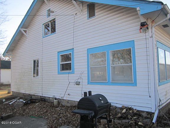 1 1/2 story home with nice large front porch. Hardwood under carpet downstairs. Nice enclosed side porch that makes a great mud room and place for extra wood for fireplace. Upstairs is one big room with walk in closet. Has lots of potential. Detached garage.