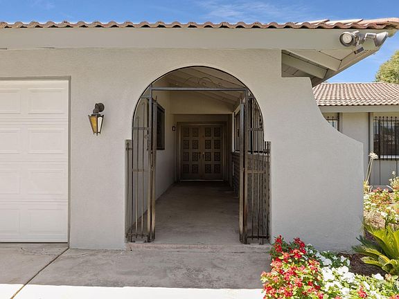 Step into this beautifully maintained 60's Spanish style home, featuring fresh paint both inside and out. Enjoy the elegance of tile floors throughout and the convenience of a spacious open kitchen, breakfast nook, and great room. The home is bathed in natural light, highlighting its three spacious bedrooms and two large bathrooms. Outside, a large covered patio awaits, perfect for entertaining. Additional storage is provided by a bonus shed. The expansive grass area and side yard are ideal for gardening enthusiasts. The property also includes a two-car garage. This move-in ready gem is a must-see!