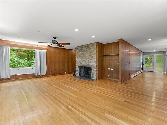 Highest & Best Offer by 12 noon Wednesday, 7/17. Open living, beautiful backyard views & walls of windows with this custom 1950's Ranch located near the center of town hidden from view on 5 acres! Just shy 1,700 Sq Ft of living this home has maintained many of its original features. Brick fireplaced LRM, butternut woodwork, floor to ceiling windows, open dining! Large 1950's Kitchen filled with cabinets, countertop range & wall oven. Spacious Master bedroom w/updated tiled shower bath. Updated main bath & 2 additional bedrooms. Recessed lighting many ceiling fans & lower level playroom (family room). A little updating will make this house sparkle. House being sold "as is"