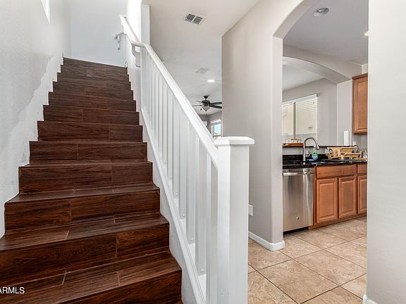 Welcome to your charming two-story home with covered front and rear patios. This property offers both comfort and style, making it an ideal place for you and your family to call home.Spacious Eat-In Kitchen with Granite Counters and Breakfast Bar. All of the bedrooms are located on the upper level of the home. The master bedroom is a true retreat. It boasts a walk-in closet and ensuite bathroom featuring dual sinks, making mornings more efficient, and a tile surround shower for a touch of luxury. Additional bedrooms share a Jack-and-Jill bathroom, which adds convenience and functionality. No more lugging laundry up and down the stairs, upstairs laundry room with built-in cabinets. The back yard is a lovely outdoor space, featuring a lush grassy area where you can enjoy outdoor activities Seller added mini split to downstairs area for added comfort but willing to remove if seller desires prior to close of escrow