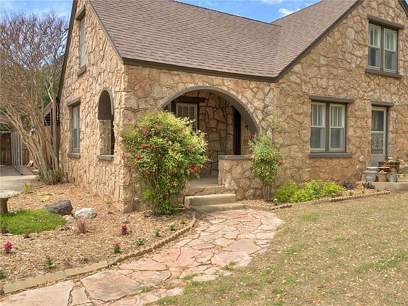 Such an endearing home from top to bottom! Love hardwood floors? Original hardwood exposed in some parts of home and laminate covering the rest. Home has fresh paint, updated bathrooms including shower, flooring, light and plumbing fixtures. Two living spaces, one with wood burning fireplace and plenty of natural light, overlooking large backyard. Spacious bedrooms, Main bedroom downstairs and two guests rooms upstairs as well as full bath and balcony area. Outside is the place to be with the huge covered patio, bar space, garden area, storage shed, detached one car garage, carport and privacy fence. From the tree lined front to the charming porch, to the spacious backyard, this home is perfect for those looking for charm!