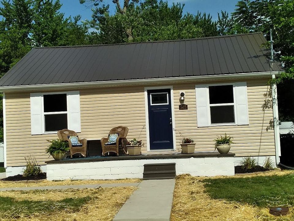 Newly renovated two bedroom, one bathroom home near Scales Lake in Boonville. With its full basement it is a perfect starter home. The interior renovations on the home include a new 200 amp electric panel, wiring and light fixtures. The home has all new plumping, including a new water heater. The new plumping includes a partial half bath rough in, in the basement. The interior renovation also includes new cabinets and stainless steel appliances in the open concept kitchen and living room. The home has original refinished hardwood floors throughout. The exterior renovation includes new doors, windows, a metal roof, gutters, a concrete patio and sidewalks. The house is move in ready.