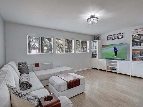 Beautifully remodeled and well-maintained split-level home located in a quiet cul-de-sac with 2 car garage, RV parking and extra-large driveway, with lots of space for your cars and other toys; this 3 bedroom (potential 4th), 3 bath, 1,868 sq ft spacious family home has it all with so much potential! ENERGY EFFICIENCY abounds with the Titan Solar Power system installed in 2022, efficient wood burning fireplace in the living room, Andersen dual pane windows throughout the home, new 65 gallon electric hybrid water heater and new ceiling fans. The kitchen is updated with new refrigerator, electric range, microwave convection oven, dishwasher, and reverse osmosis water filtering system, and has lots of cabinets and roomy pantry. Covered deck off dining area leads to huge fenced back yard. The raised deck provides lovely views of the natural, treed surroundings and provides access to the private back yard with fire pit, fenced dog run, large Tuff Shed (10' x 16' with 4' door) with built-in shelving, an adorable custom made chicken coup and run built in 2020 (enclosed coop 6' x 8' and run 16' x 8'). Hookup for jacuzzi in back yard.