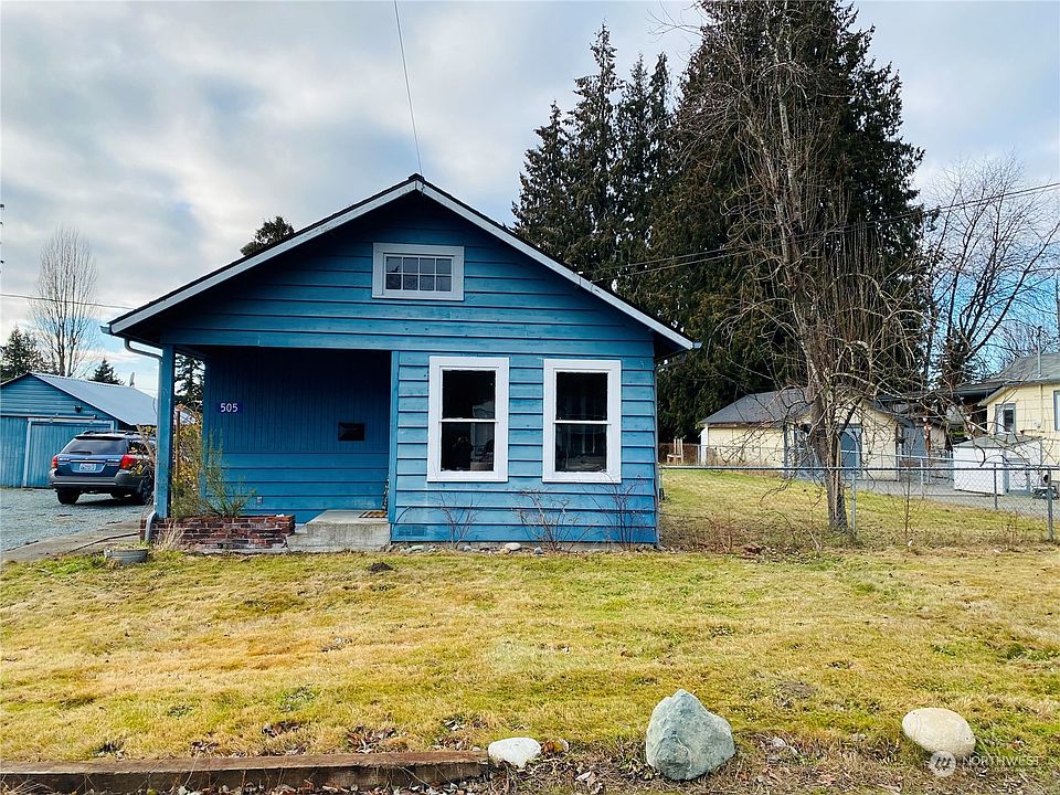 Wonderfully Located home w UPDATED INTERIOR. HUGE, Fenced Yard w fruiting grape & raspberry vines, blueberries. Loads of potential for gardening or happy days for pets. Firepit. Shop or detached garage w LOTS OF POWER. Great space to hookup RV. UPDATED INTERIOR: flooring looks awesome. Kitchen improvements incl. beautiful granite counters, built-in wine holder. Lots of window light (when we have light). Master Bath features custom stone-cut sink and walk-in shower w pebbled floors & 2 GLORIOUS waterfall shower heads. Walking distance to much of Burlington's desirable amenities including restaurants, bars, shopping, public transportation, schools, and the ability to get to I5 and Hwy 20 in moments. This little blue house is a must see!
