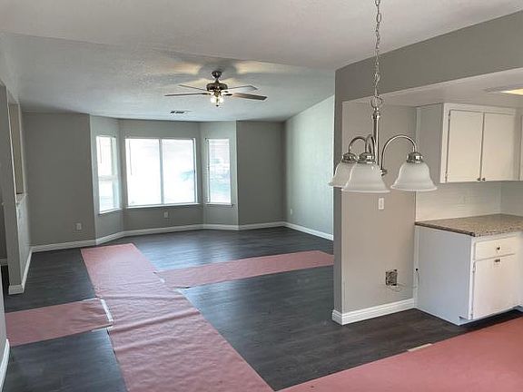 This clean 4 bed 1.75 bath was newly remodeled. Inside you will find a large living room with high vaulted ceilings and new flooring throughout the house. The Kitchen has granite counter tops and new appliances. The guest bath offers beautiful granite counters and a new bath tub. The large master bedroom offers a long vanity area with granite counters and a step in shower. In the back yard you have a covered patio and a gated dog pen on the side. The two car garage has a new garage door and garage door opener. Act fast, this one won't last.