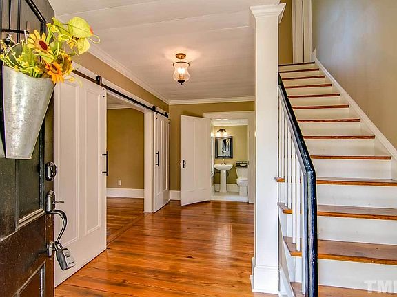 Precious 1890's Farmhouse on N Mineral Springs Rd. off Hwy 98 in East Durham. Intentionally remodeled from bottom to top, most original antique pine intact: 6/6 divided light windows, plank floors + ceilings, tall baseboards & doors. What a spread for a Party! Sliding farm doors. Master suite downstairs. Modernized bathrooms. Original pressed tin tile roof. Seller will include a new-built rear deck + $5,000 in buyer concessions in full list price. Urban, Suburban & Country living as one beautiful package.