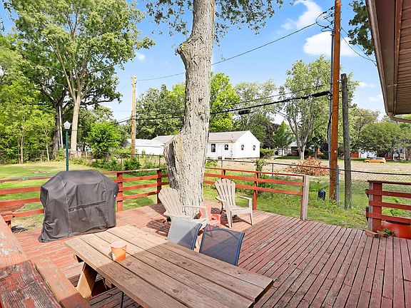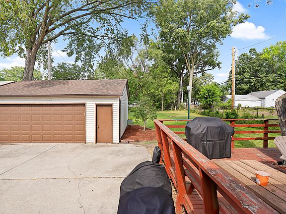 Well maintained two bedroom, two bath home on spacious lot with mature trees. The front living room features a panoramic bay window which fills the house with natural light and shines on the hardwood floors. Both bedrooms are generously sized with a small sitting room off the master bedroom. Adorable eat in kitchen with white cabinets and newer appliances. Full basement offers 2nd kitchen, rec room (projection screen and sound system will stay), 2nd full bath and office/playroom/storage space. Enjoy entertaining on the large back deck or on the welcoming front porch- perfect to catch an evening sunset or "people watch". Detached, extra large two car garage offers additional storage with a small "turnaround" in driveway to make getting out of the drive easy!