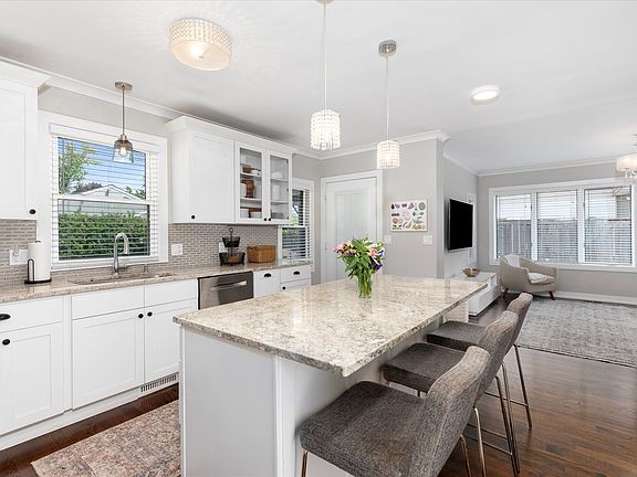 Be WOWED by this oh-so roomy 3 BR/ 2 BA beautifully rehabbed mid-century brick ranch where natural light abounds! Comfort meets style in this gracious 1,700 sq ft home that comes with hard-wood floors throughout. Well-designed open floor plan was created with intention for today's single-story living! Inviting and thoughtfully crafted kitchen comes with ample white Shaker-style cabinetry, stainless appliances (microwave '19), tasteful granite, and kitchen-sink view of backyard. The island overhang is perfect for counter dining, homework, or project space to spread out. With the open connection to family room, space is ideal for conversation while cooking and entertaining. On top of all this, the kitchen door opens to deck retreat to enjoy dining and a respite from the daily grind. It is also a convenient area for grilling and has wide-open yard to create your perfect garden. Primary bedroom accommodates king-size bed and comes with a custom closet. Lovely bathrooms to boot! And if this is not enough...wait 'til you see the finished basement rec room, laundry room and loads of storage space! It's a great space for kids, work or whatever fits your fancy. 505 N. Rose lives large! Note: New Sump Pump '22; A/C '22; Washer/ Dryer '23; Laundry vinyl plank floor '23. Fantastic location and neighborhood near Metra, Carpenter Elementary & playground, and Wildwood Nature Center. Loads of Park Ridge restaurants, shopping and close proximity to city, O'Hare and so much more. The heavy lifting has been done and with neutral tones throughout, there is nothing to do but move into this gem! WOW!!!