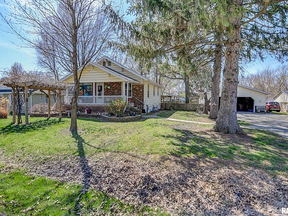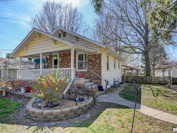 This adorable bungalow has a lot to offer! It features a privacy fenced, beautiflly landscaped yard on two lots, deck built in 2018, above ground pool with slides, and a large 2.5 car garage with heated/insulated office space attached. Inside features include newer wood flooring in the living room in 2018, fireplace, ample storage/counter space in kitchen with freshly painted cabinets, master bedroom with large walk-in closet, 3 total bedrooms, and 2 full baths.