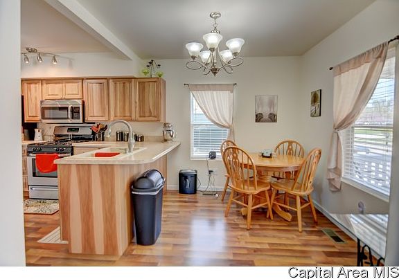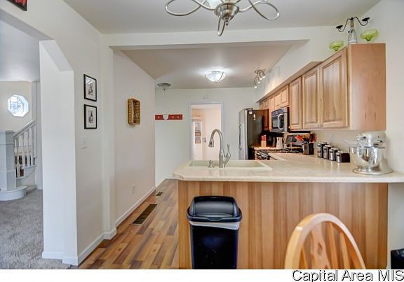 This gorgeous home is a must see! So many features to this home including newer carpet, and flooring, totally remodeled bath and a half with newer plumbing. Newer furnace and air. Newer wiring. Newer siding and windows! The oak kitchen cabinetry is gorgeous with stainless steel appliances. Office nook with great sunshine is a fabulous place to get work done or read a book and relax. Concrete patio is great for BBQs and entertaining. So much curb appeal to this home inside and out, it will knock your socks off! An affordable home that looks brand new!