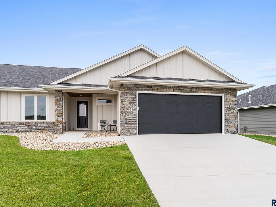 You will fall in love w/ this quality built custom designed home w/ lots of natural light and everything you need on the main floor. This home offers an open floor plan w/ 10 ft. ceilings throughout the main floor. Living room has a custom fireplace to enjoy on cold winter days. Kitchen features a large island w/ quartz countertops, stainless steel appliances, & a spacious walk-in pantry. Primary bedroom has a big master closet, large walk-in shower, double sinks, & a pass through to your main floor laundry for your convenience. There is also a second bedroom on the main floor. The lower level gives you potential for a family room, 3rd bedroom, bathroom, & an extra room as well for a office/exercise/hobby room! The garage is fully insulated & equipped w/ drains, a water hook up & roughed in for a heater. Enjoy doing your own yard work or we will help you find someone to contract out for yard and snow!