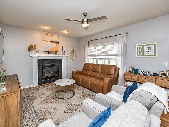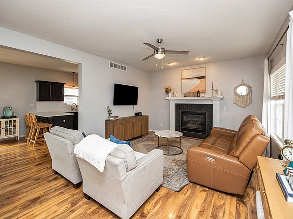 Welcome to this fabulous 4-bedroom, 4-bath two-story home with a finished lower level! Step inside to a bright and welcoming great room featuring a cozy gas fireplace and an abundance of natural light. Beautiful laminate flooring flows throughout the main level, leading to a stylish kitchen complete with stainless steel appliances, quartz countertop & tile backsplash, ample cabinet space, a breakfast bar, and an adjoining dining area with sliding doors that open to an oversized deck with a pergola. Upstairs, you'll find four spacious bedrooms with vaulted ceilings and two full baths, including a generous primary suite with a walk-in closet. The finished lower level adds valuable living space and includes a convenient half bath—perfect for a playroom, office, or entertainment area. Enjoy outdoor living with plenty of room for activities with the expansive backyard. Located in a desirable neighborhood near Heritage Elementary, parks, trails, restaurants and with easy access to Hwy 141—this home truly has it all!