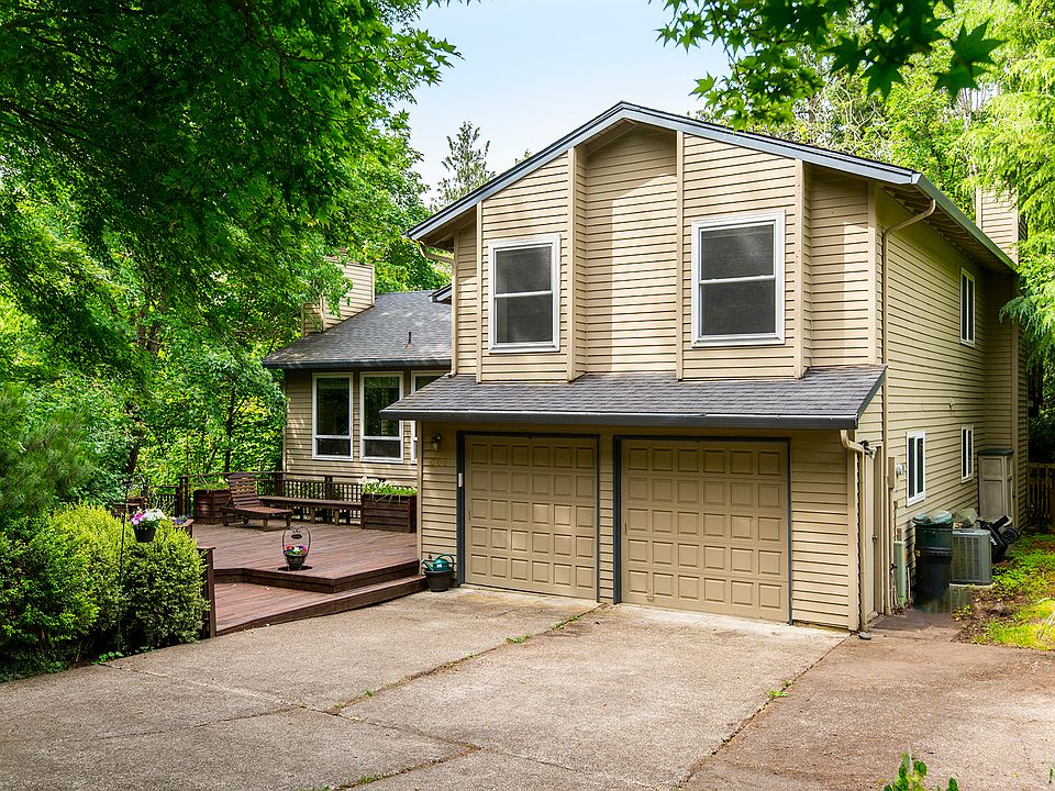 Discover this private retreat nestled in the woods on a peaceful half-acre property. Enjoy seasonal colors, tall windows, and vaulted ceilings. Find a large kitchen island and all new appliances for entertaining. 2 primary suites and 3 additional bedrooms offer an office or gym space. Features include 3.5 baths, 3 fireplaces, and a wine cellar. Updates include a new roof, solar and refinished wood floors. And it's all centrally located near schools, shopping, restaurants, highways, and a winery!