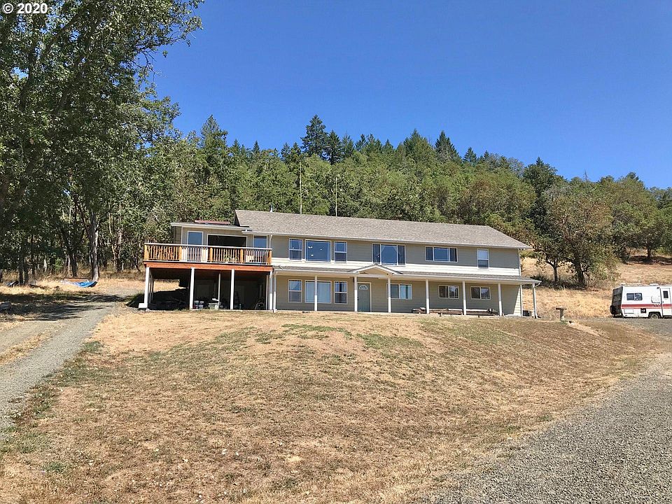 Lookingglass acreage, 2 ponds with water rights, & a possible 2 family home! Don't miss the additional full RV hook up or hardship home location too. You'll enjoy the valley and mountain views from this large, well-maintained home. The daylight basement is ready for customization as a second family setup or more living space for a large family. Bring your animals, enjoy the fruit trees, & make this property yours.
