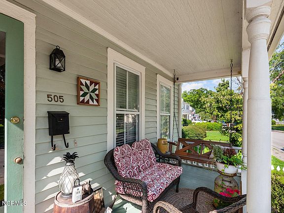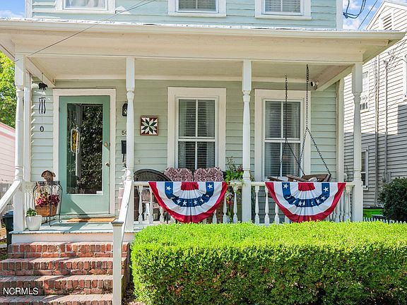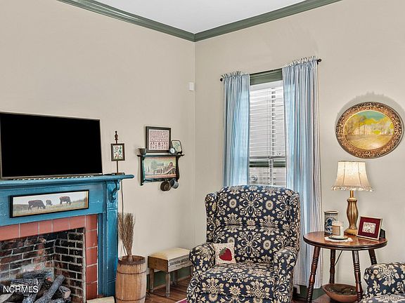 Welcome to this charming historic home in Downtown New Bern. This beautiful residence features 2 bedrooms and 2 1/2 bathrooms. The covered front porch exudes historic southern charm, inviting you into a cozy living room off the front foyer, complete with a beautiful gas fireplace. Step through to the formal dining room, which is warm and inviting with its own fireplace.