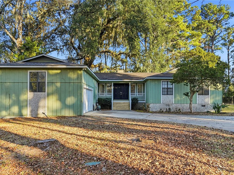Welcome to this charming 3-bedroom, 2-bath ranch-style home located in the desirable Belle Point community of Brunswick, Georgia. This well-maintained home features newer LVP flooring in the main living areas with bedrooms carpeted, offering both durability and modern style. Situated on a spacious lot with beautiful oak trees, the property provides excellent curb appeal and a peaceful setting. A long driveway leads to a double garage, offering ample parking and storage.