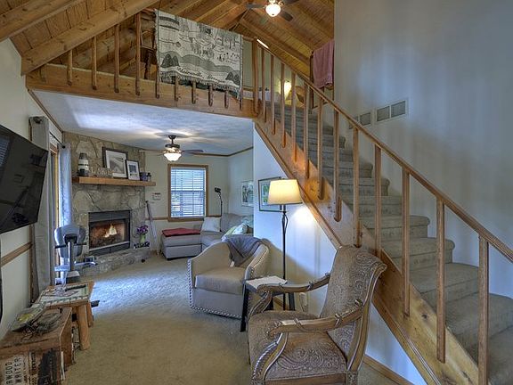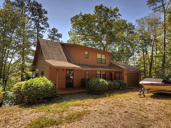 Lake home conveniently located to Blairsville. Two bedroom rustic home with 12 x 18 swim dock sits on Lake Nottely. Gentle lot. Garage. Finished basement with workshop. Very well maintained. Large, upper and lower back porches with view of lake. Stone Fireplace with gas logs. Laundry Room. Home is accented with wood ceilings for the mountain feel. Landscaped for privacy. Good rental history. Great lake home at an affordable price.