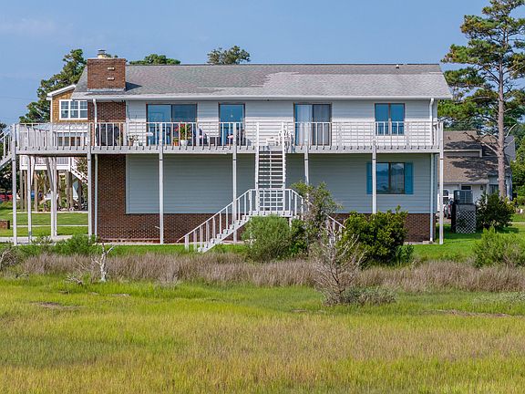 Water view home with panoramic views and stunning sunrises! Great setting in a water access neighborhood with boat ramp! Experience the ultimate blend of comfort and natural beauty in this delightful 3-bedroom, 3-bathroom home with breathtaking water views. The expansive living room, bathed in natural light, features a cozy fireplace and a kitchen with a central island, perfect for relaxation and entertainment. On the first floor, you will find a spacious bedroom with a full bath and a large great room ideal for family fun and games. Ascend to the upper level to be greeted by stunning water vistas and mesmerizing sunrise views. This floor includes a generous living area, kitchen/dining, and two additional bedrooms with two more bathrooms. Enjoy the outdoors with a huge open deck with a view of Cape Lookout Lighthouse! A large double garage provides ample space for your vehicles and storage, making this home not only a retreat but a functional space for all your needs. As a bonus, the subdivision includes a neighborhood boat ramp, providing convenient access to water activities. Embrace the beauty of indoor-outdoor living and start each day with beautiful sunrises in this exceptional property.